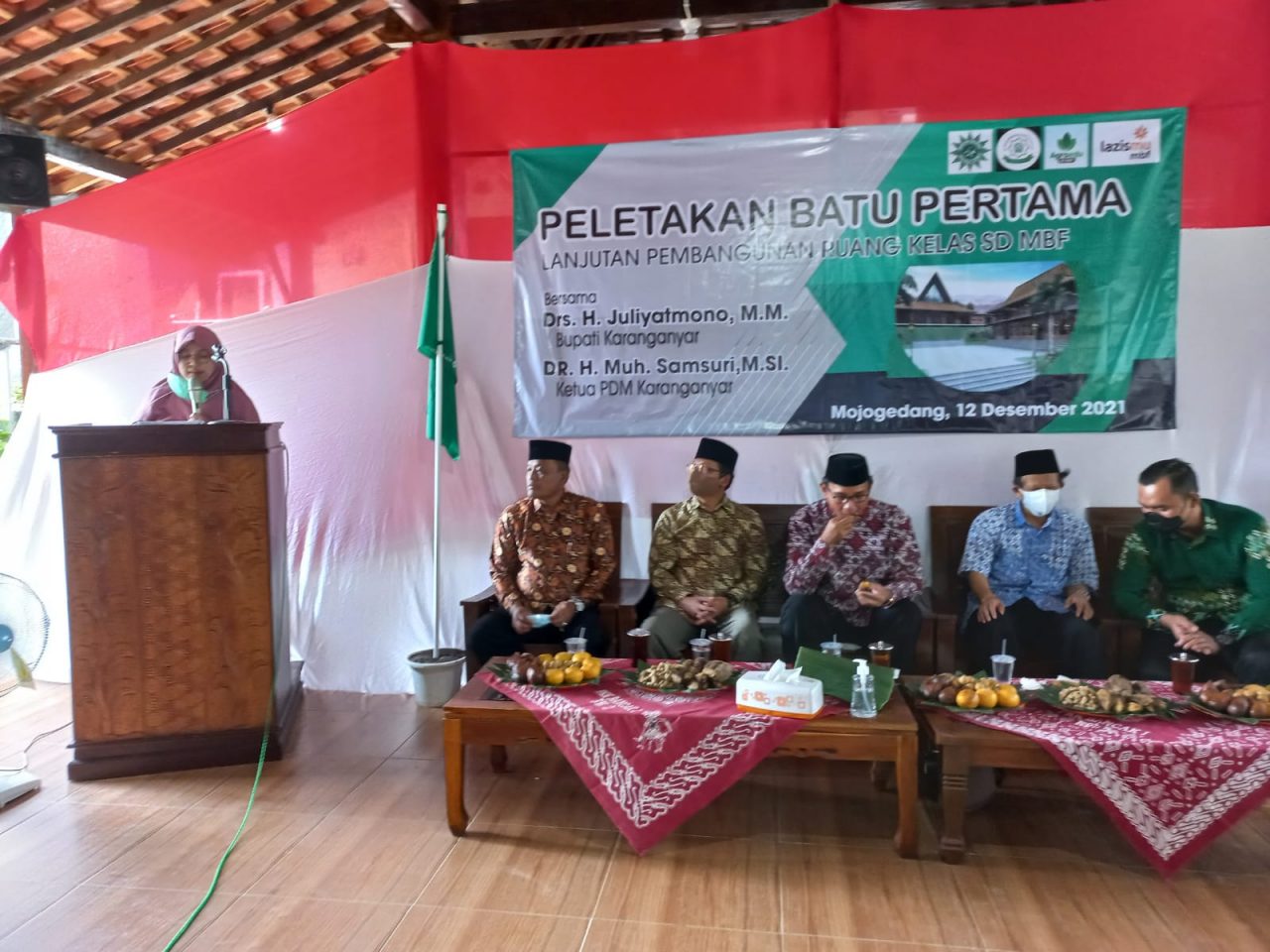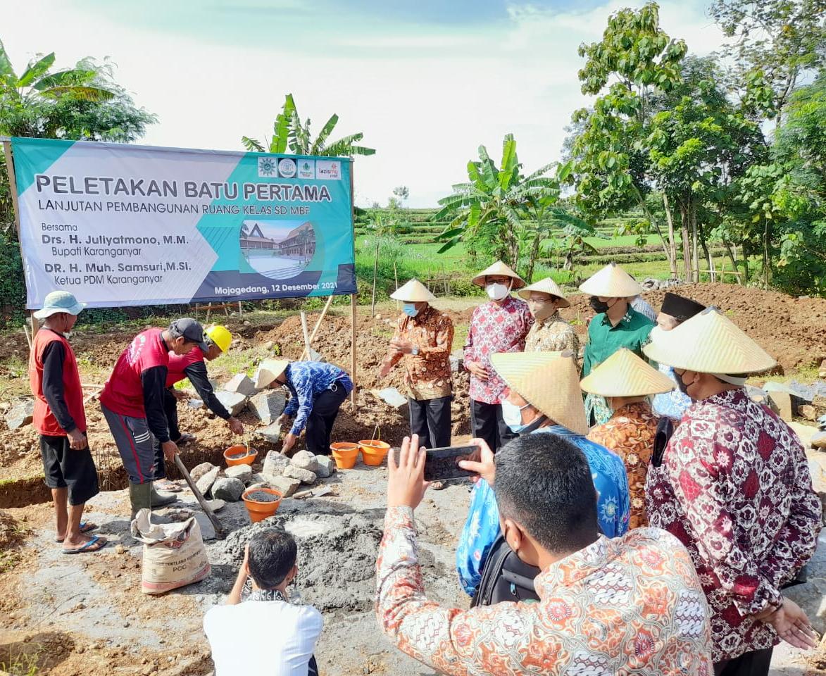 Muh Samsuri selaku Ketua PDM Karanganyar hadir dalam prosesi peletakan batu pertama pembangunan ruang kelas MBF juga memberikan apresiasi dan semangat kepada kepala sekolah maupun tenaga pendidik MBF.