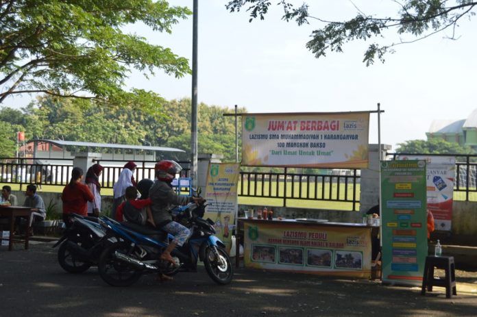 Setelah sukses dengan gebrakan jum’at berbagi makan gratis di lingkungan SMA Muhammadiyah 1(MUHI) Karanganyar, kini Lazismu SMA MUHI melebarkan sayap sedekahnya dengan membagikan 100 porsi bakso secara gratis kepada warga di lapangan belakang Kantor Dewan Perwakilan Rakyat Daerah (DPRD) Kabupaten Karanganyar, Jum’at (12/3).