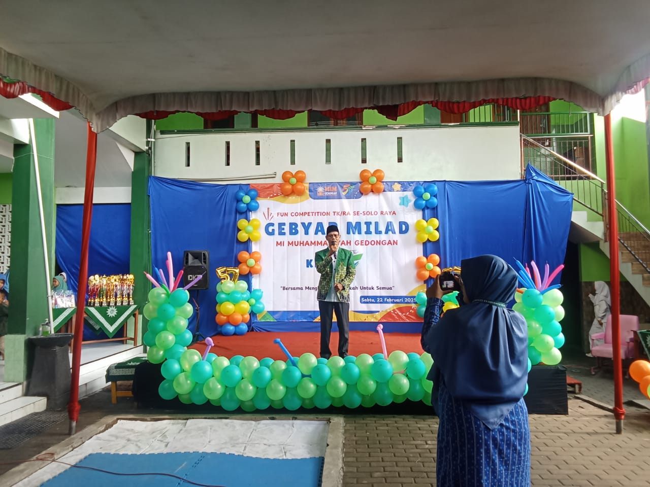 Seno Ariyanto, SE, Ketua Pimpinan Cabang Muhammadiyah Colomadu, dalam sambutannya menyampaikan harapan agar MIM Gedongan terus berinovasi seiring bertambahnya usia ke-57 dan menjaga kepercayaan masyarakat. Ia juga mendorong semua TK yang hadir agar setelah lulus, siswa-siswi tersebut melanjutkan pendidikan di sekolah Muhammadiyah Colomadu, serta bagi siswa kelas 6 SD untuk melanjutkan ke SMP Mutu Colomadu.