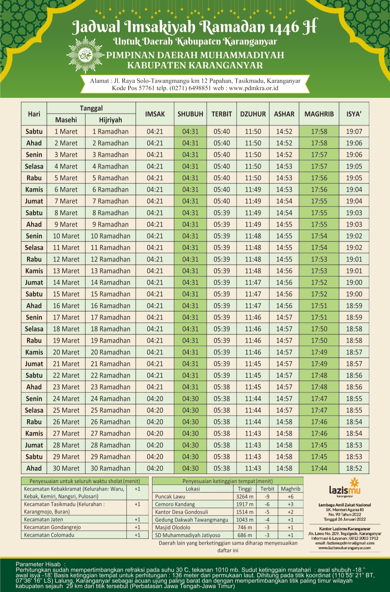 Flyer Jadwal Imsyakiyah Ramadhan PDM Karanganyar dapat diunduh melalui link dibawah ini :