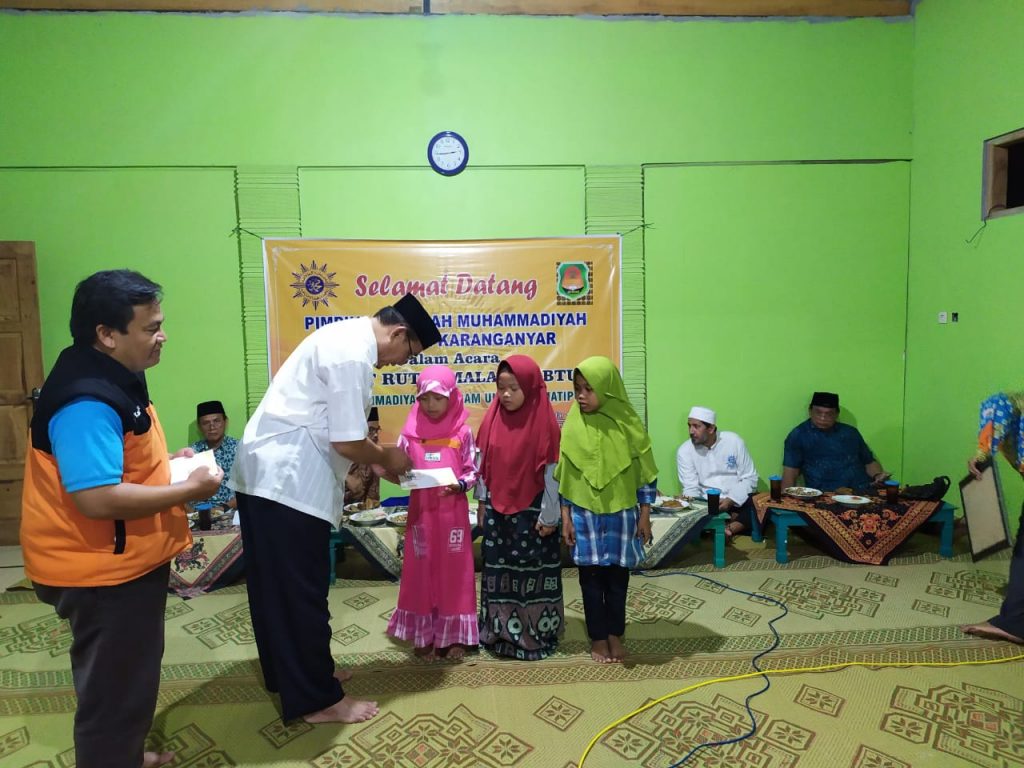 Penyerahan secara simbolis kepada tiga anak siswa SDMPU Jatipuro dilakukan oleh ketua PDM Kabupaten Karanganyar Muh Samsuri. Dalam arahannya ketua PDM mengingatkan terkait sinergi bersama yang telah dibangun oleh Muhammadiyah Karanganyar. “Persyarikatan maju bersama AUM dan AUM maju bersama AUM yang lainnya ini akan memperkuat gerakan kita, SDMPU Jatipuro ini baru berdiri dua tahun maka perhatian dari persyarikatan melalui PCM dan PDM serta lembaga-lembaga yang ada sangat diperlukan. Tidak hanya di Jatipuro masih banyak AUM-AUM kita yang harus di perhtikan dan “digendong” bareng-bareng”. Kata pendidik yang doktor ilmu hukum wakaf ini.