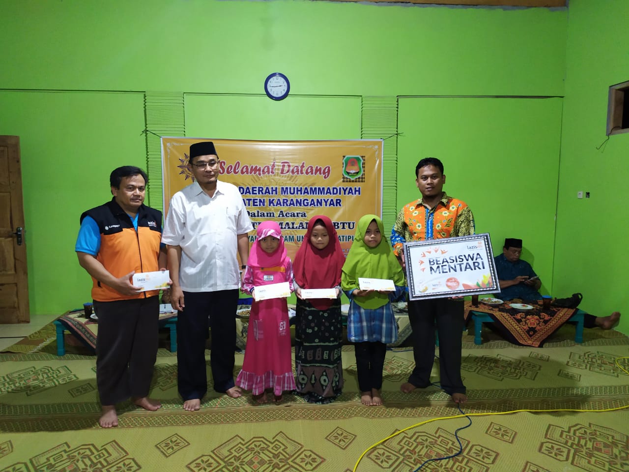 Untuk kesekian kalinya pada acara kantoran rutin PDMKabupaten Karanganyar di daerah, Lazismu memberikan tasyaruf “BeasiswaMentari”. Menurut Direktur Lazismu PDM Karangnyar kali ini ada sepuluh paketbeasiswa. “Kali ini kita berikan sepuluh paket Beasiswa Mentari keapada sepuluhanak di SDMPU Jatipuro setelah yang terakhir minggu yang lalu di SMPMuhammadiyah 1 Gondangrejo. Selama bulan Desember 2019 ini kita sudahmenyerahkan Bea Siswa Mentari di PCM Colomadu, PCM Jenawi, PCM Gondangrejo danmalam ini di PCM Jatipuro”.