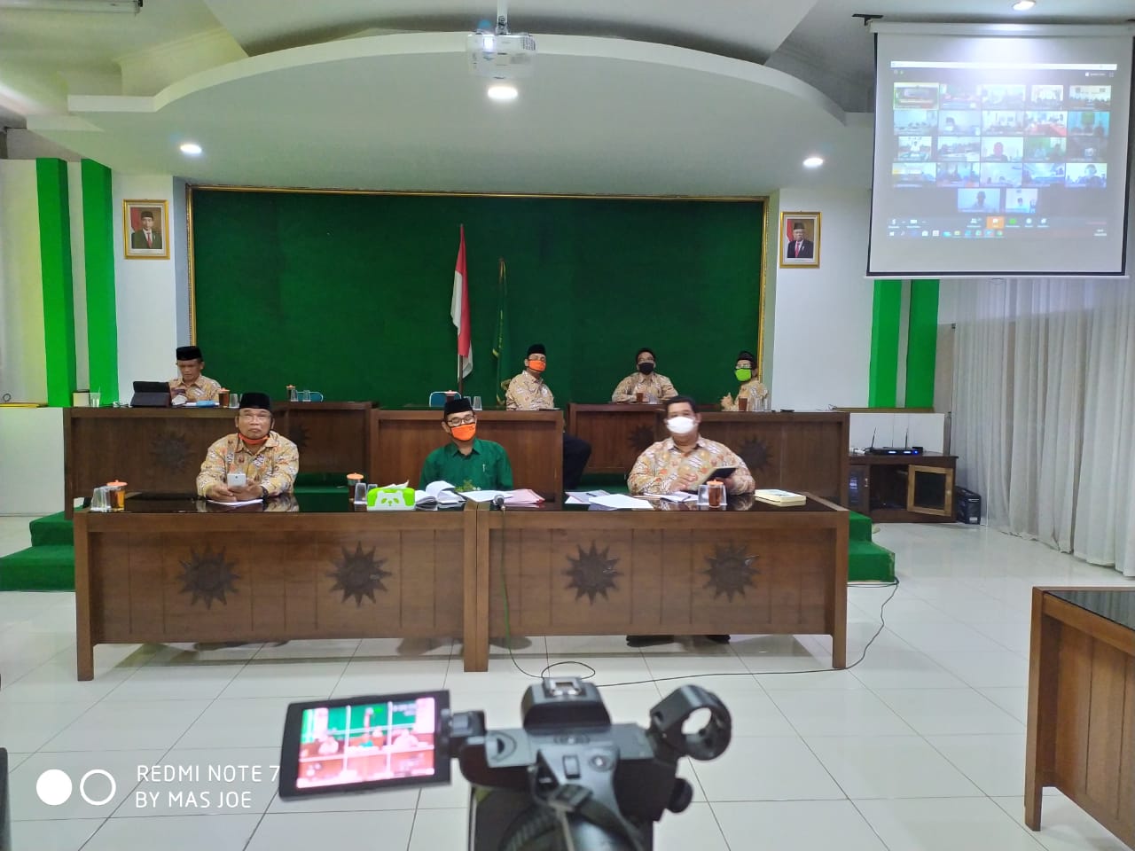 KARANGANYAR – Wabah Covid 19 yang belum juga menunjukkan tanda-tanda hilang penyebarannya di Indonesia dan khususnya di Provinsi Jawa Tengah tidak boleh menghalangi proses informasi dan komunikasi terkait persyarikatan. Melalui media daring, Sabtu (18/04) dilaksanakan Rakor PWM dengan PDM dan Ortom Wilayah Via Teleconference. Bertempat di Aula Lantai 2 Gedung Dakwah Muhammadiyah Karanganyar Pimpinan PDM mengikuti acara rakor tersebut.