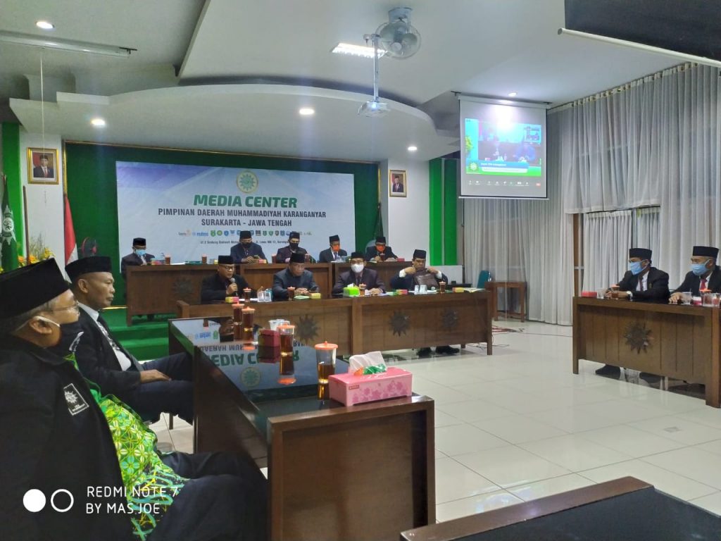 Mengawali rapat pimpinan, Ketua PDM Karanganyar Muh Samsuri menyampaikan beberapa hal terkait pelaksanaan rapim tersebut. “Pertama yang peru saya sampaikan adalah terkait peserta rapim pada hari ini, dikarenakan masih dalam situasi pandemi Covid 19 maka rapim kali ini hanya diikuti oleh Pimpinan Daerah, Ketua Pimpinan Cabang, Ketua Majelis/ Lembaga untuk Pimpinan Ortom dipersilakan mengikuti proses melalui siaran online yang ditayangkan langsung oleh Tim Media Center PDM.”