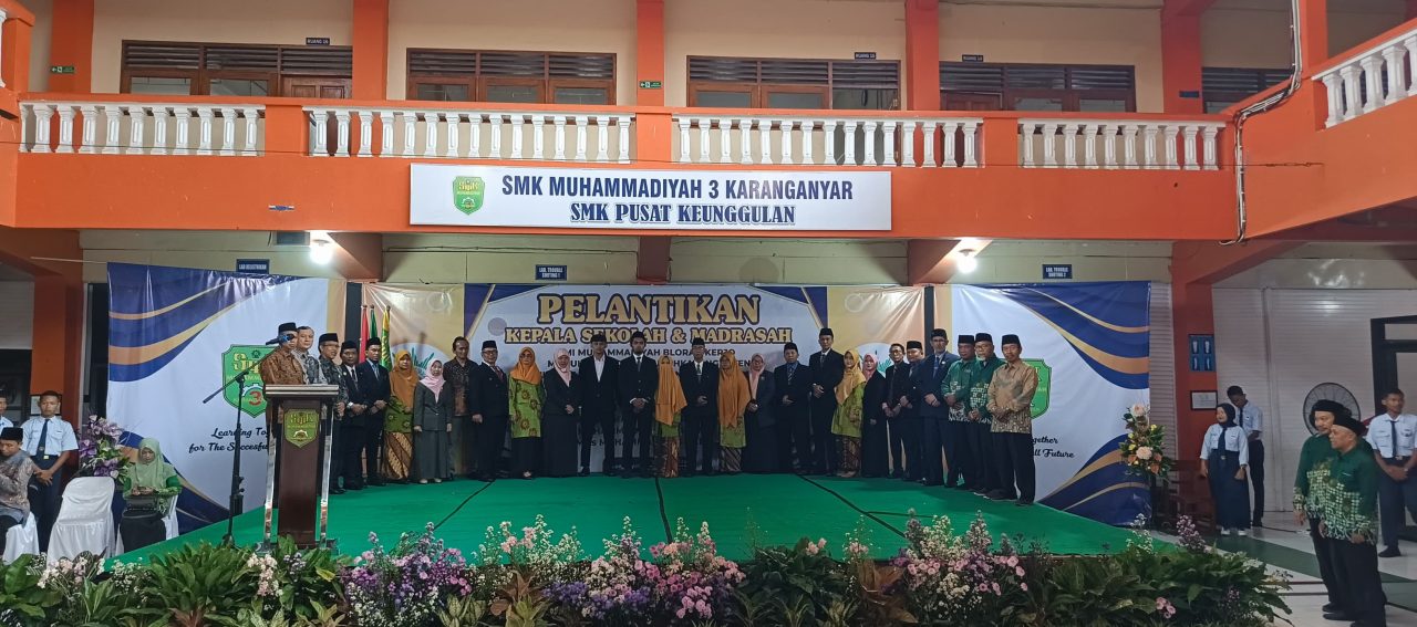 NEWSKABAR12, Karanganyar – Pimpinan Daerah Muhammadiyah Karanganyar melaksanakan pelantikan sembilan kepala sekolah dan madrasah Muhammadiyah pada Sabtu(22/02/2025) yang berlangsung di SMK Muhammadiyah 3 Karanganyar. Acara ini dipimpin oleh Ketua Pimpinan Daerah Muhammadiyah Karanganyar, Muhammad Arief Babheri, dan dihadiri oleh berbagai tokoh penting, termasuk perwakilan dari Kementerian Agama, Muhammad Rusdiyanto. Prosesi pelantikan berlangsung khidmat.