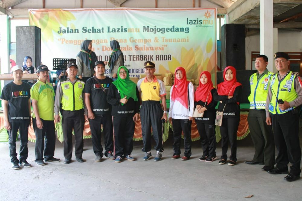 Acara jalan sehat donasi peduli gempa dan tsunami Sulawesi Tengah dimeriahkan dengan penampilan group band dari SMP MUPAT JOGED yang berkolaboraso dengan siswa MTs Muhammadiyah 4 Mojogedang, nampak hadir Kapolsek Mojogedang AKP. Iswandi beserta jajaran anggota Polsek serta Koramil Mojogedang.