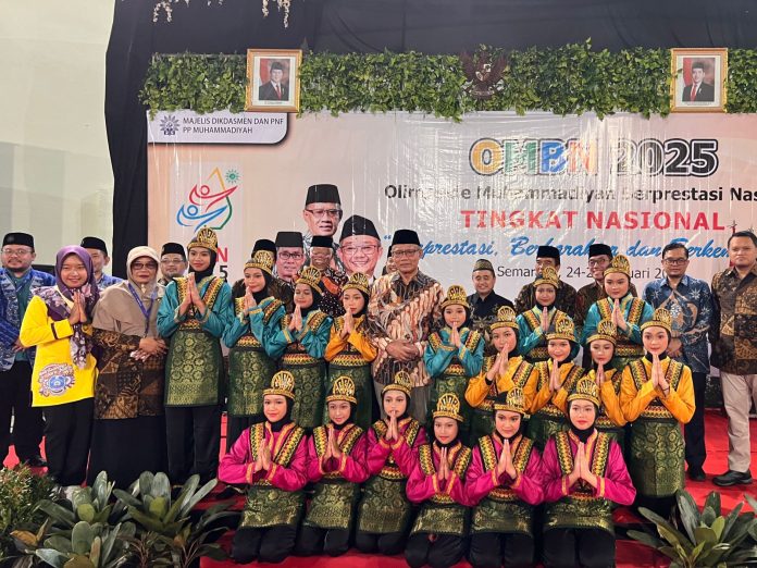 NEWSKABAR12, SEMARANG – Tim Tari Saman dari MI Muhammadiyah Karanganyar berhasil mencuri perhatian di acara pembukaan Olimpiade Muhammadiyah Berprestasi Nasional (OMBN) 2025 yang digelar di Universitas Muhammadiyah Semarang (Unimus). Acara ini dihadiri oleh Ketua Pimpinan Pusat Muhammadiyah, Prof. Haedar Nashir, yang memberikan apresiasi tinggi atas penampilan mereka.