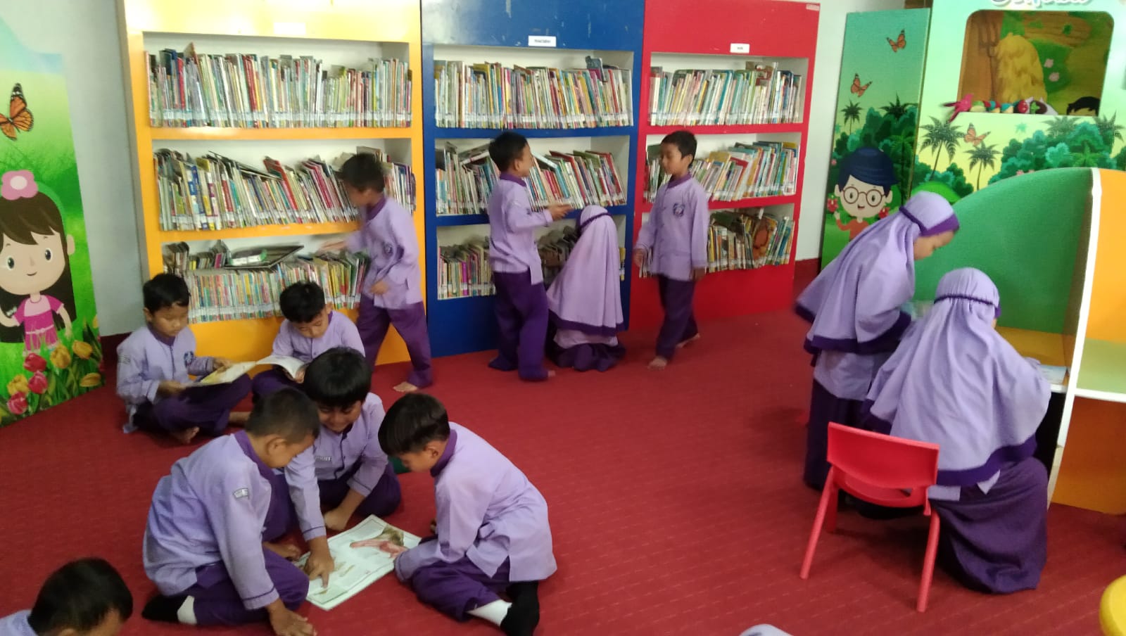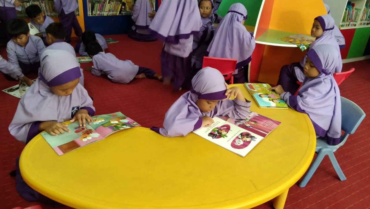 Sebanyak 52 siswa dari kelas 1 dan 2, didampingi oleh empat guru, berangkat menuju perpustakaan menggunakan dua mobil elf. Setibanya di lokasi, anak-anak langsung diarahkan ke Ruang Baca Anak oleh petugas perpustakaan. Mereka tampak antusias memilih buku yang menarik untuk dibaca.